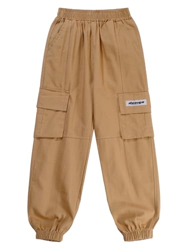 TiaoBug Kids Boys Girls Cargo Pants with Pockets Elastic Waist Workout Dance Sweatpants Jogger Trousers Streetwear 6