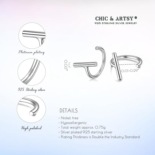 More information about CHIC & ARTSY Half Hoops Earrings 925 Sterling Silver Small Huggie Hoop Earrings Ball, Bar, Star, Moon, Heart, Cross, Dot, Triangle Half Hoops Cartilage Piercing Earrings Tiny Hoop Stud Earrings