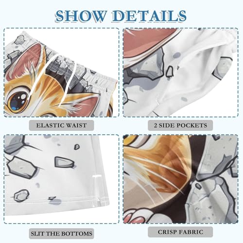 DOMIKING White Cute Cats Kids Shorts Pull-on Boys Shorts with Elastic Waist Casual Athletic Pants for Playwear Summer Outdoor 4