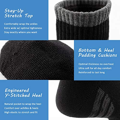 More information about u&i socks Men's Performance Cushion Cotton Mid Cut Quarter Athletic Socks, Black (4-Pack)