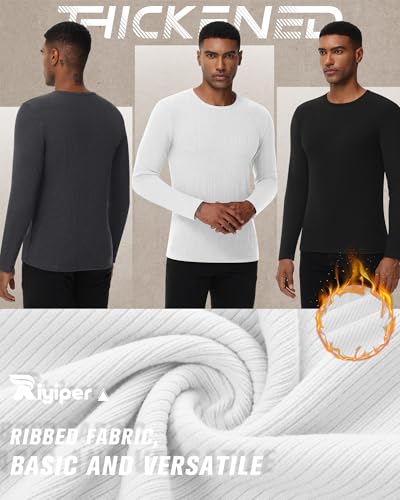 Riyiper 3 Pack Men's Ribbed Thermal Shirts Crew Neck Long Sleeve Tops Winter Stretchy Slim Basic Undershirt 3