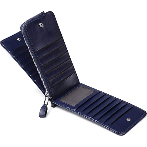 Women's Genuine Leather Credit Card Holder RFID Long Zipper Purse Wallet 5