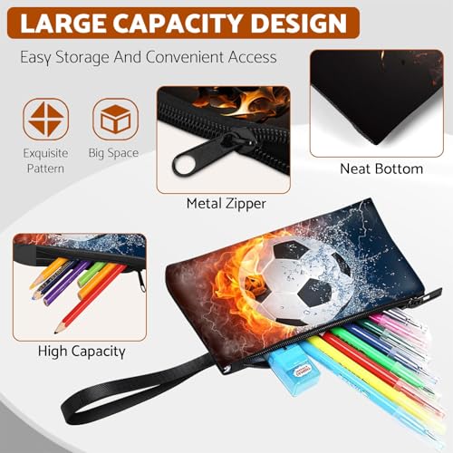 • 【3-IN-1 BOYS ROLLING BACKPACK】Boys rolling backpack - 17.3"x12.2"x8.26",lunch bag - 10.2"x7.9"x3.1",pencil case - 7.9"x4.3".The boys rolling backpack features a spacious 1 main compartment,2 front zippered pocket,and 2 side pockets for books,notebooks,and must-haves.Soccer pattern adds a cool factor to this rolling backpack.