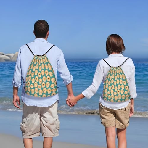 sought-after ! Cute Dogs Yellow Teal Drawstring Bag String Bag For Sport Swim Yoga