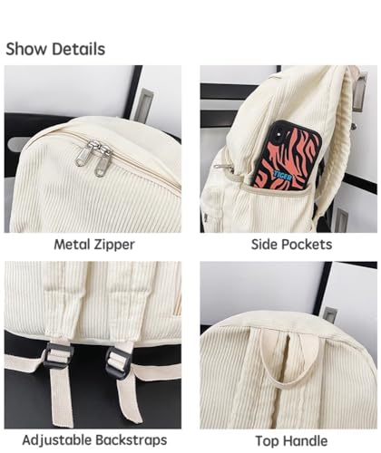 • Minimalist Aesthetic Backpack: Solid color corduroy book bag size 12.2 inch(L)*5.12 inch(W)*16.54 inch(H)/31*13*42cm.It could store 14,15.6,16 inch laptop and large folders