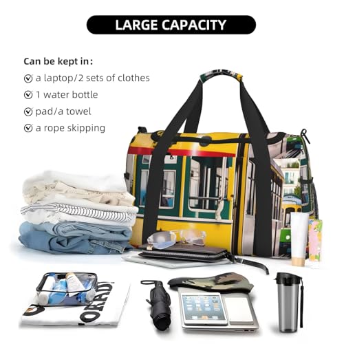 • Wide Application : Lisbon Tram Print Travel Bag For Very Suitable To Carry All Your Personal Items, Can Be Use It As Travel Bag, Yoge Bag, Swimming Bag, Dance Bag, Gym Holdall, Hospital Bag, Weekend Bag, Sports Gym Luggage, Workout Bag, Overnight Bag, Camp / Airplane Duffle, Carry-On Luggage.Perfect For Exercise, Travel, Sports Activities, Tennis, Basketball, Fishing, Hunting, Cycling, Gym, Yoga, Beach, Swimming Pool, Camping, Practice Day Or Weekend Trip.