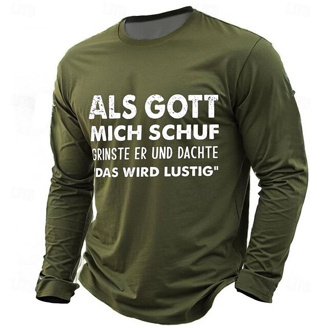 Men's Long Sleeve Graphic Tee: Funny German Slogan 'When God Created Me, He Smirked & Thought This Will Be Fun' 10