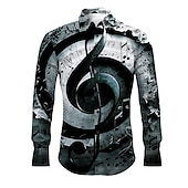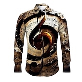 More information about Men's Boardmasters Musical Notes Shirt Button Up Shirt Long Sleeve Vintage Artistic Daily Wear Going out Spring & Summer Turndown Print Button-Down Blue Brown Green Gray