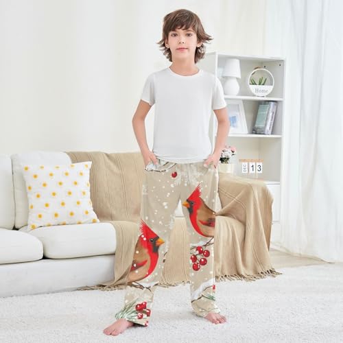 Christmas Cardinal Boys Long Pants Soft Trousers Elastic Waist Kids Lounge Bottoms with Pockets S-XL 1
