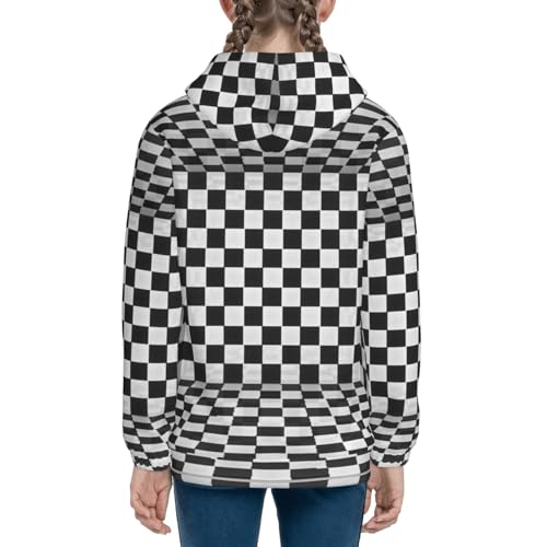 3d Black and White Chessboard Kids Pullover Hoodies Boys Zip Up Sweatshirts Girls Athletic Clothes with Pocket 5