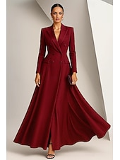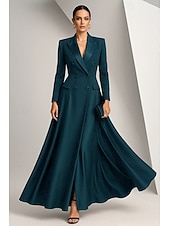 More information about Tuxedo Dress A-Line Mermaid Formal Wedding Guest Satin Elegant Long Sleeve Ankle Length Peak Lapel Double Breasted