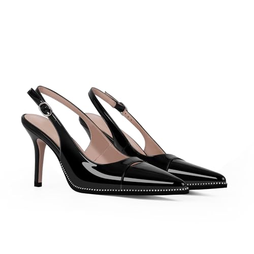 • Comfortable and Chic: Crafted from premium patent leather, these high heel slingback pumps offer a perfect combination of style and comfort. The pointed toe design elongates your legs, while the adjustable buckle strap ensures a secure fit.