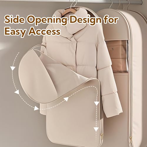 Space Saving Hanging Garment Bag with Self Compression Zipper, Space Saver Closet Organizers, Dust Cover Clothes Bags for Down Coat, Clothes Cover For Closet Storage for Travel with Rack (Beige,3Mix) 4