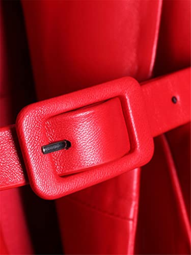 More information about Red Black Maxi Leather Trench Coat, Women Long Skirted Elegant Overcoat Plus Size