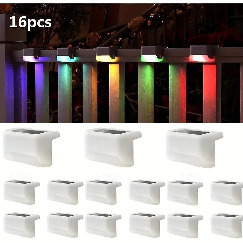 16 Pcs outdoor solar wall lights, step decks, stairs, fences, courtyards, gardens, path lights, warm light, white light, colorful light 1