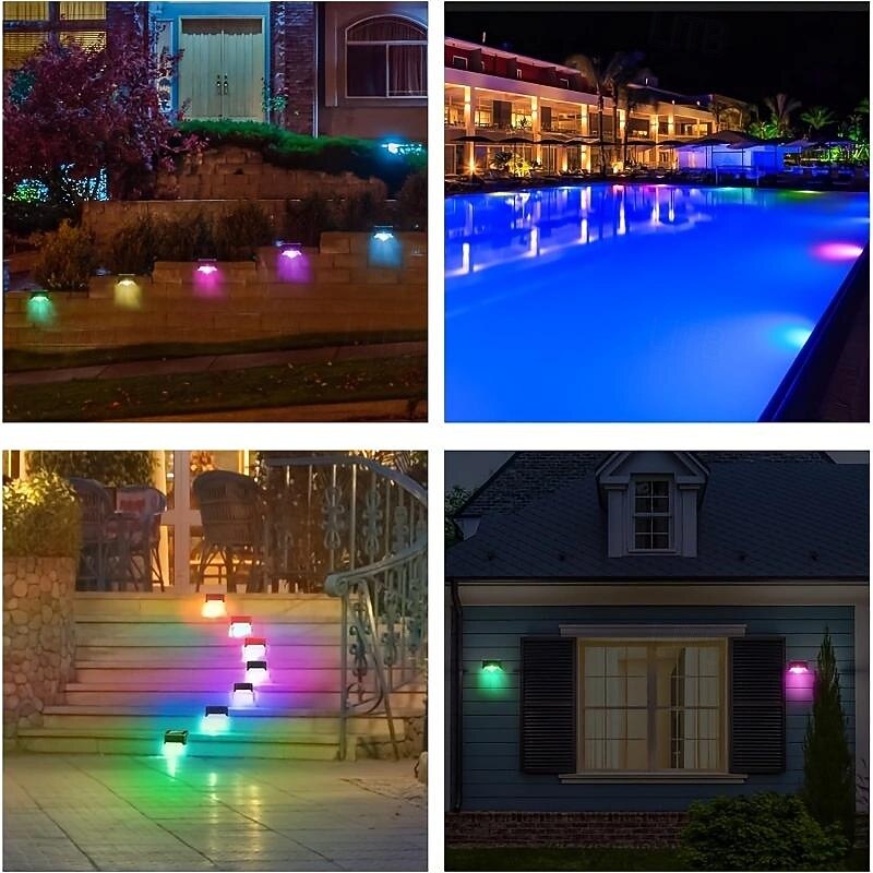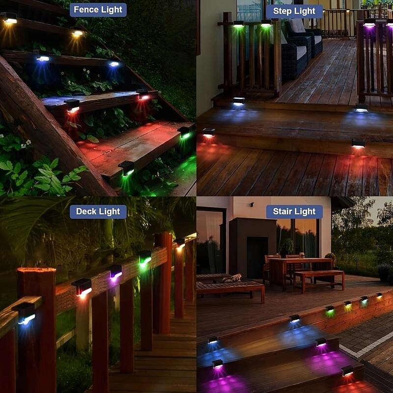 16 Pcs outdoor solar wall lights, step decks, stairs, fences, courtyards, gardens, path lights, warm light, white light, colorful light 4