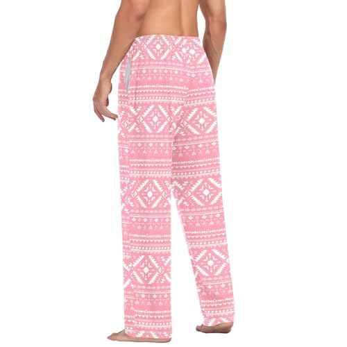 Mens Cotton Pajama Pants Sleep Lounge Pj Bottoms Sleepwear with Pockets Drawstring S Pink Aztec Geometric 4
