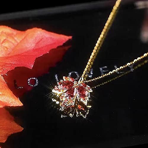 HOT ! Dainty Maple Leaf Pendant Necklace Cubic Zirconia Crystal Leaves 14K Golden Plated Choker Necklaces for Women Exquisite Jewelry Gifts Christmas