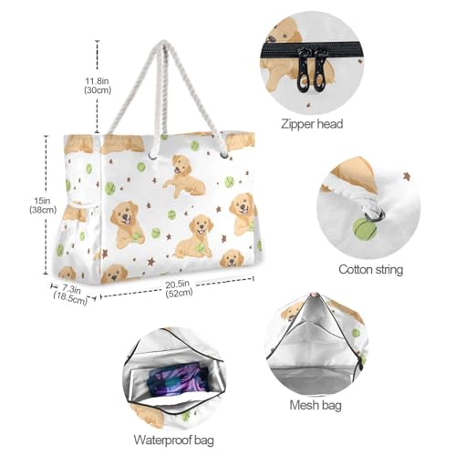 HOT ! susiyo Golden Retriever Dogs Beach Bags for Women Large Travel Tote Bag Waterproof Sandproof Lightweight Swim Pool Bag for Family Outdoor