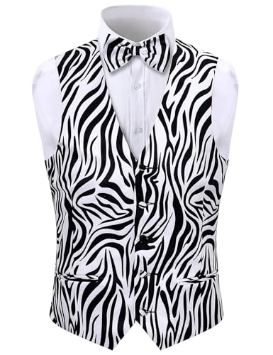 2-Piece Party Suit Vest for Men, Animal Print Waistcoat Vest & Bow Tie 6