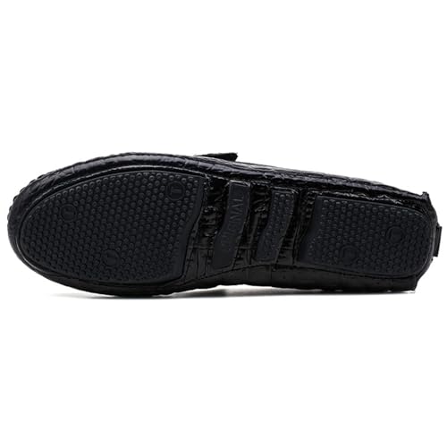 Men's Crocodile Pattern Leather Loafers Slip-on Driving Walking Moccasins with Metal Buckle Business Casual Fashion Wedding Dress Boat Shoes 6