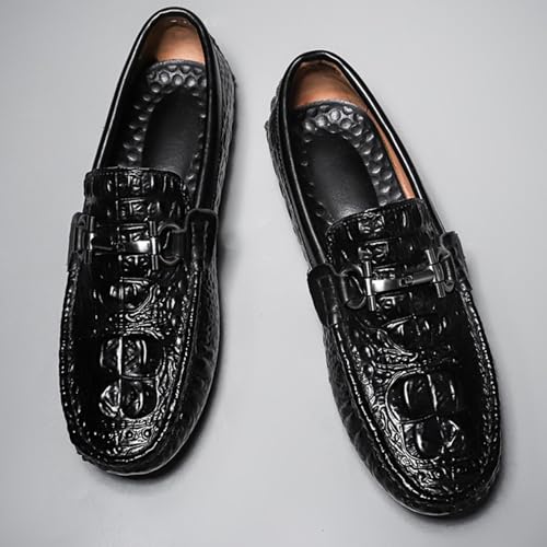 • PREMIUM DESIGN: Luxurious crocodile pattern leather loafers featuring elegant metal buckle detail and sophisticated slip-on style perfect for formal and casual occasions