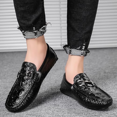 Men's Crocodile Pattern Leather Loafers Slip-on Driving Walking Moccasins with Metal Buckle Business Casual Fashion Wedding Dress Boat Shoes 7