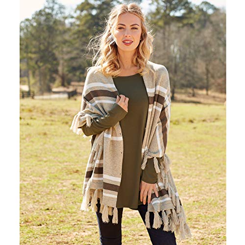 More information about Mud Pie Womens Westin Tassel Poncho Wrap Viscose Yarn Dyed