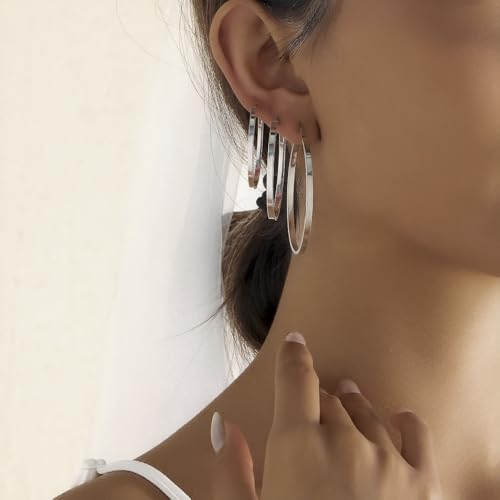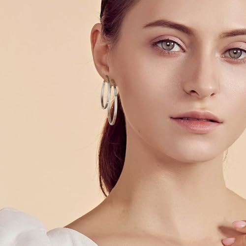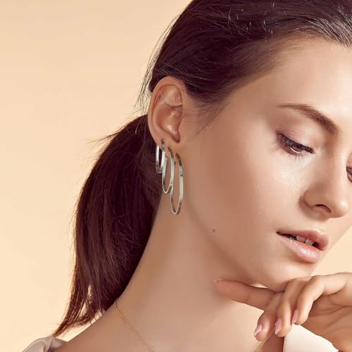 • 【Suitable for Versatile Styling】Our silver hoop earrings set includes 3 pairs of silver hoops: 30mm/40mm/50mm, each pair features a smooth and high-polish surface that reflects light beautifully, complementing both casual and formal attire, making them a minimalist yet elegant addition to any jewelry collection.