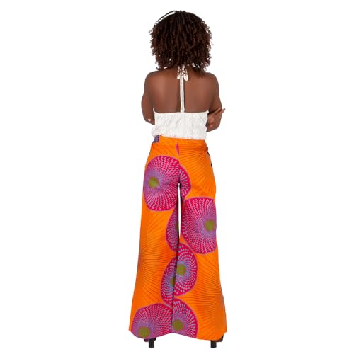 • 【SPECIAL DESIGN】- African floral print, wide leg, A-line style, side pockets, high waist, vibrant colors, flared, zipper closure, loose fit, stylish, elegant, palazzo pants, long trouser.