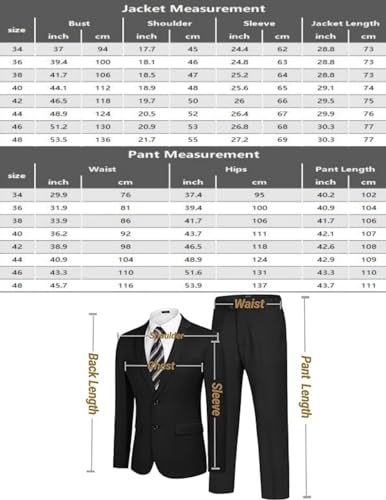 • 【3 PIECE SUITS】- Jacket: Single breasted/One button/Notch lapel/Flap Pockets; Pants: Flat front/ Expandable waist; Vest: Single breasted/5 buttons/Adjustable back. With experienced tailors, a high-quality and well-cut suit can instantly make a man confident, powerful and charming.