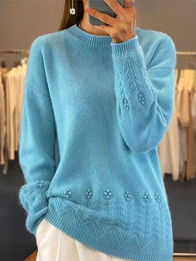 This Women's Sweater Casual supple Pure Color Ribbed Crew Neck Knitted Long Sleeve Regular Tops Knit Outdoor Daily Weekend Pink Blue Fall Winter combines elegant design with practical functionality. Every detail has been carefully considered to ensure you get the best possible experience. The premium construction means this product will serve you well for years to come.