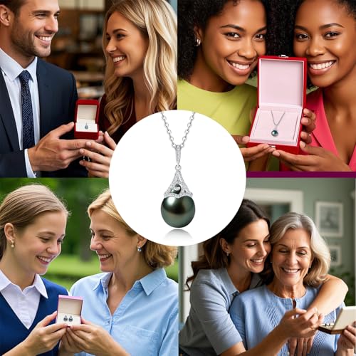 Tahitian Black Pearl Necklace, 9-12mm AAAA Natural Seawater Pearl Pendant with D Color Moissanite & 18K White Gold Plated Sterling Silver Chain, Luxury Jewelry Gifts for Women, Mother, Mom,Wife, Girlfriend, Anniversary, Birthday 6