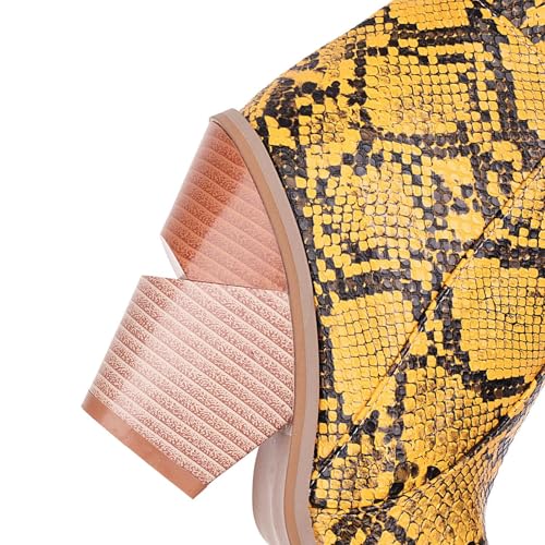 Snake Print Knee High Boots for Women Chunky Heel Pointed Toe Cowboy Boots Sexy Western Snakeskin Cowgirl Boots 6