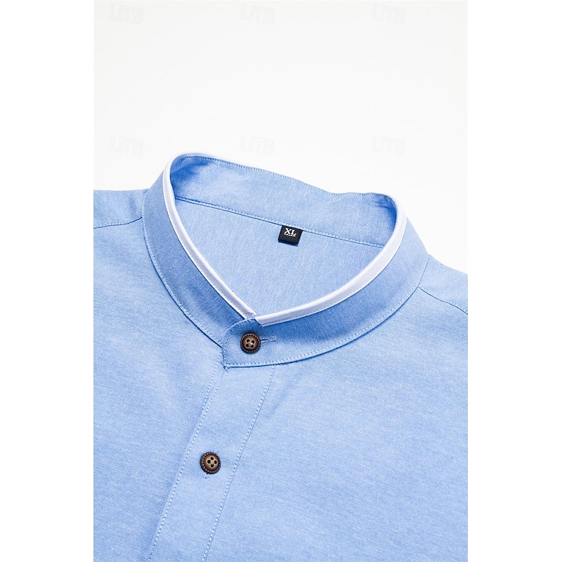 Men's Band Collar Shirt Dress Shirt Oxford Shirt Solid / Plain Color Wedding White Blue Gray Light Blue Long Sleeve Standing Collar Spring &  Fall Clothing Apparel 5