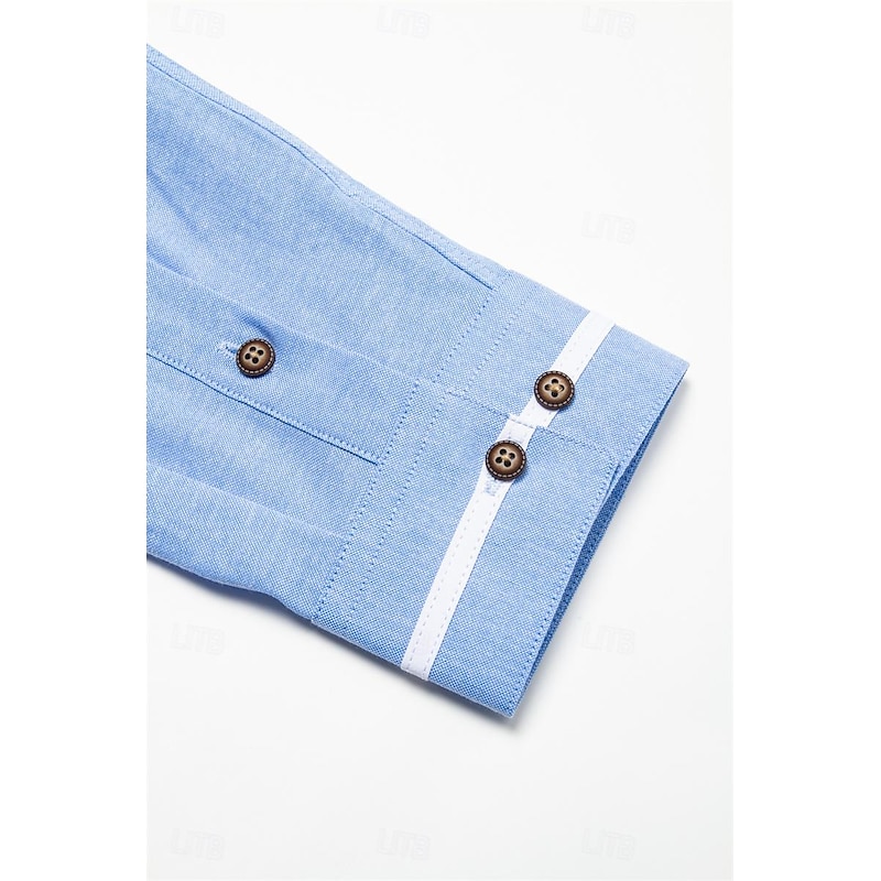 Men's Band Collar Shirt Dress Shirt Oxford Shirt Solid / Plain Color Wedding White Blue Gray Light Blue Long Sleeve Standing Collar Spring &  Fall Clothing Apparel 13