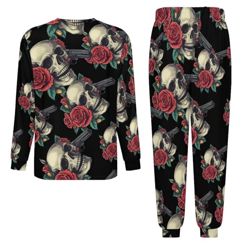 More information about Skull Rose Gun Mens Pajamas Set Long Sleeve Sleepwear Pjs Set Shirts And Bottoms Sleep Sets Loungwear
