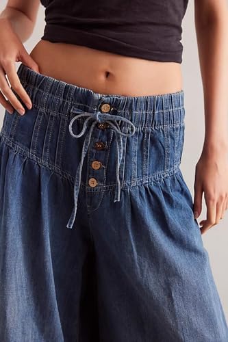 HOT ! yoeasy Womens Mid Rise Wide Leg Jeans Elastic Drawstring Loose Ruffle Pleated Denim Pants Y2k Baggy Boyfriend Jeans