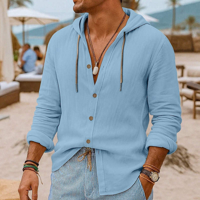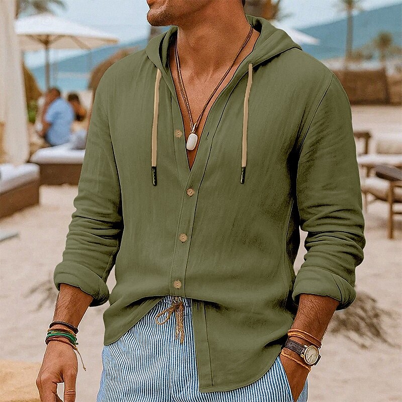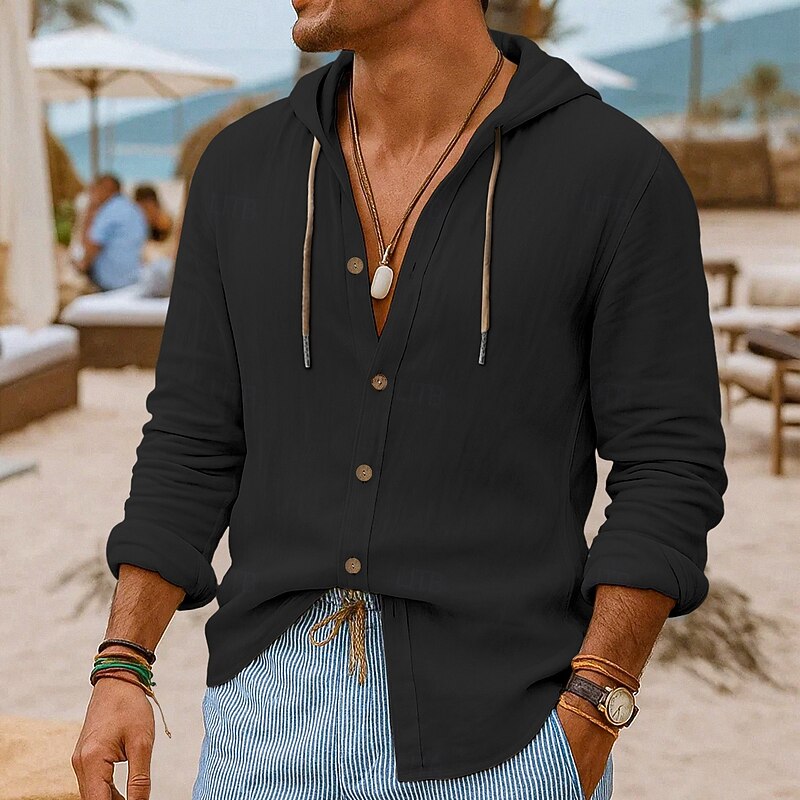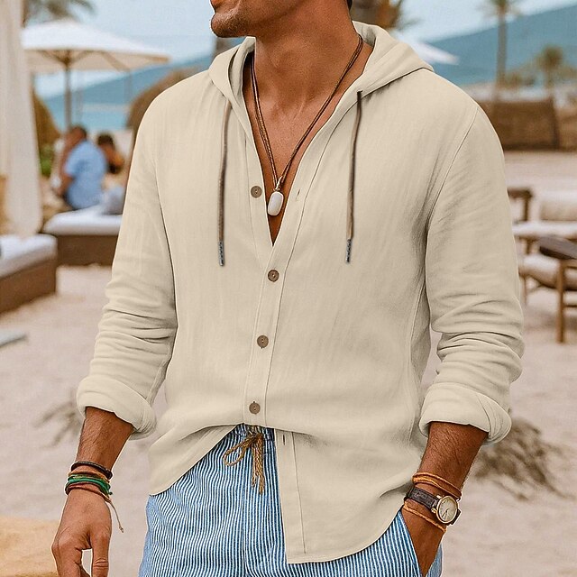 More information about Men's Shirt Linen Shirt Beach Wear Button Up Shirt Hooded Shirt Plain Vacation Casual Black White Blue Green Long Sleeve Hooded Summer Spring & Summer Clothing Apparel Buttons