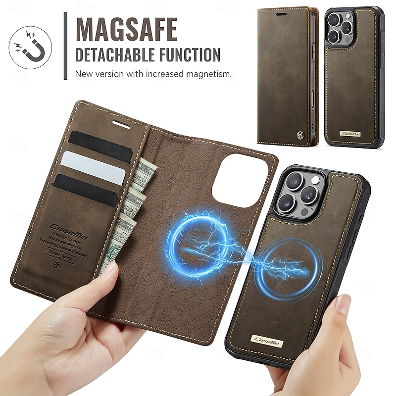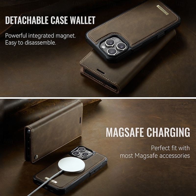 More information about Phone Case For iPhone 16 15 14 Pro Max Plus 16e 13 Pro Max Flip Cover Detachable Magnetic Support Wireless Charging TPU PU Leather