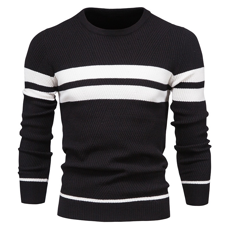 More information about Men's Sweater Pullover Sweater Jumper Knit Knitted Striped Crew Neck Stylish Outdoor Home Clothing Apparel Fall Winter Black Blue S M L