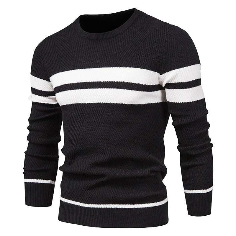 HOT ! Men's Sweater Pullover Sweater Jumper Knit Knitted Striped Crew Neck Stylish Outdoor Home Clothing Apparel Fall Winter Black Blue S M L