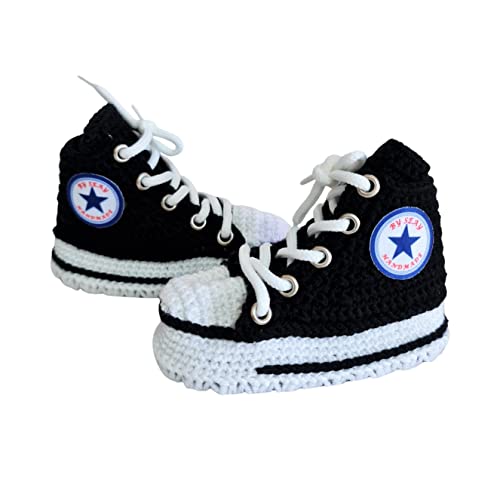 sought-after ! Handmade Newborn Baby Sleep Booties - Cotton Wool Natural Shoes Slippers - Custom Black Canvas Style Booties