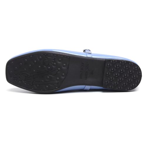 LUXINYU Women Mary Jane Flats Patent Leather Square Toe Adjustable Buckle Strap Ballet Party Dress Shoes 7