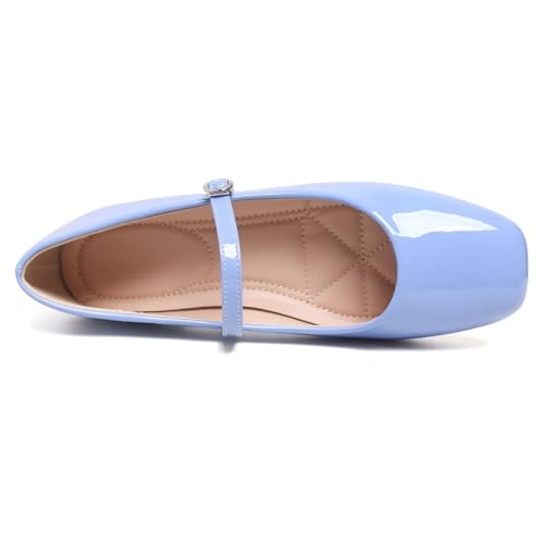LUXINYU Women Mary Jane Flats Patent Leather Square Toe Adjustable Buckle Strap Ballet Party Dress Shoes 6