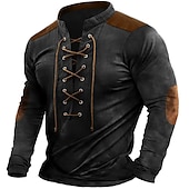 More information about Men's Henley Shirt Tee Top Long Sleeve Henley Summer Patchwork Fashion Designer Basic Lace up Vacation Street Going out Black Blue Brown Top Tee for Men