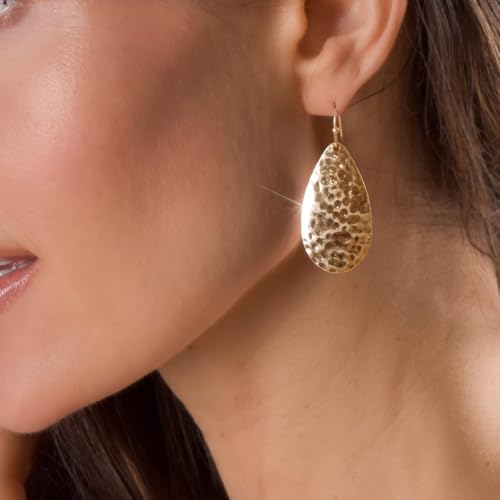 More information about Hammered Teardrop Earrings for Women - Boho Dangling Statement Dangle Earrings, Elegant Textured Tear Drop Dangles in Gold Tone or Silver Tone