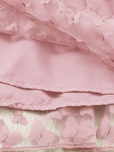 WDIRARA Girl's Butterfly Appliques Sleeveless Shirred Mesh Flared A Line Cami Dress 5
