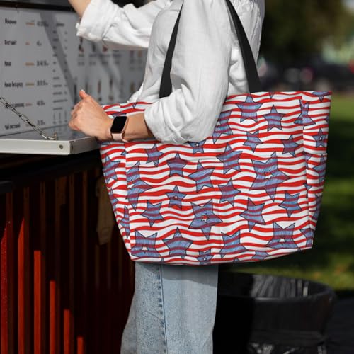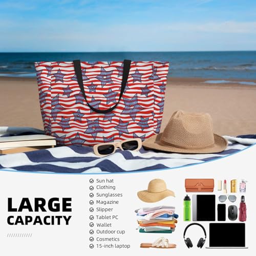 • Multifunctional Usage :Our Stars And Wavy Stripes Print Oversized Beach Tote Bag Is A Versatile Companion For Various Occasions, Including Family Beach Time, Pool Parties, Picnics, And Shopping. It Effortlessly Adapts To Your Needs, Doubling As A Travel Bag, Gym Bag, Pool Bag, Sports Bag, And Even A Carry-On Luggage Handbag For Traveling. Notably, Its Compact And Lightweight Design Allows For Easily Folded And Conveniently Stored In Your Backpack Or Luggage Case.