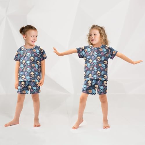 Sugar Skull Skeleton Gothic Flowers Pajama Set Pajamas Sleepwear Nightwear Loungewear Clothes Set B0403005